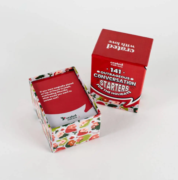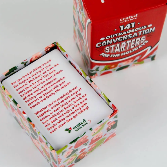 This deck comes with 141 unique, thought-provoking questions designed to help share some laughs between you and your family during the holidays.