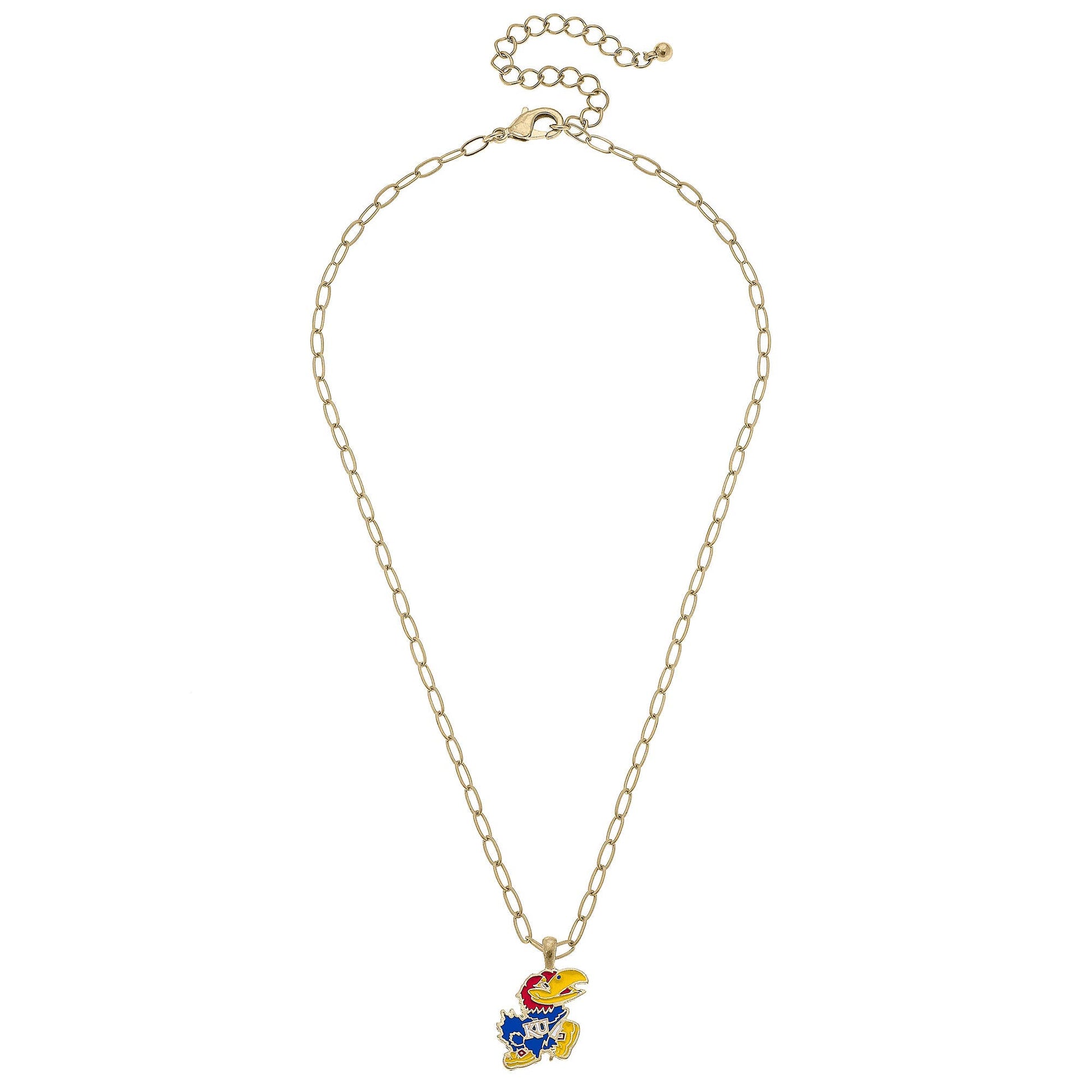 This pendant necklace is the perfect piece to show off your school spirit! Its small pendant features the University of Kansas logo in enamel material and makes a great gift for the Jayhawks super fan.