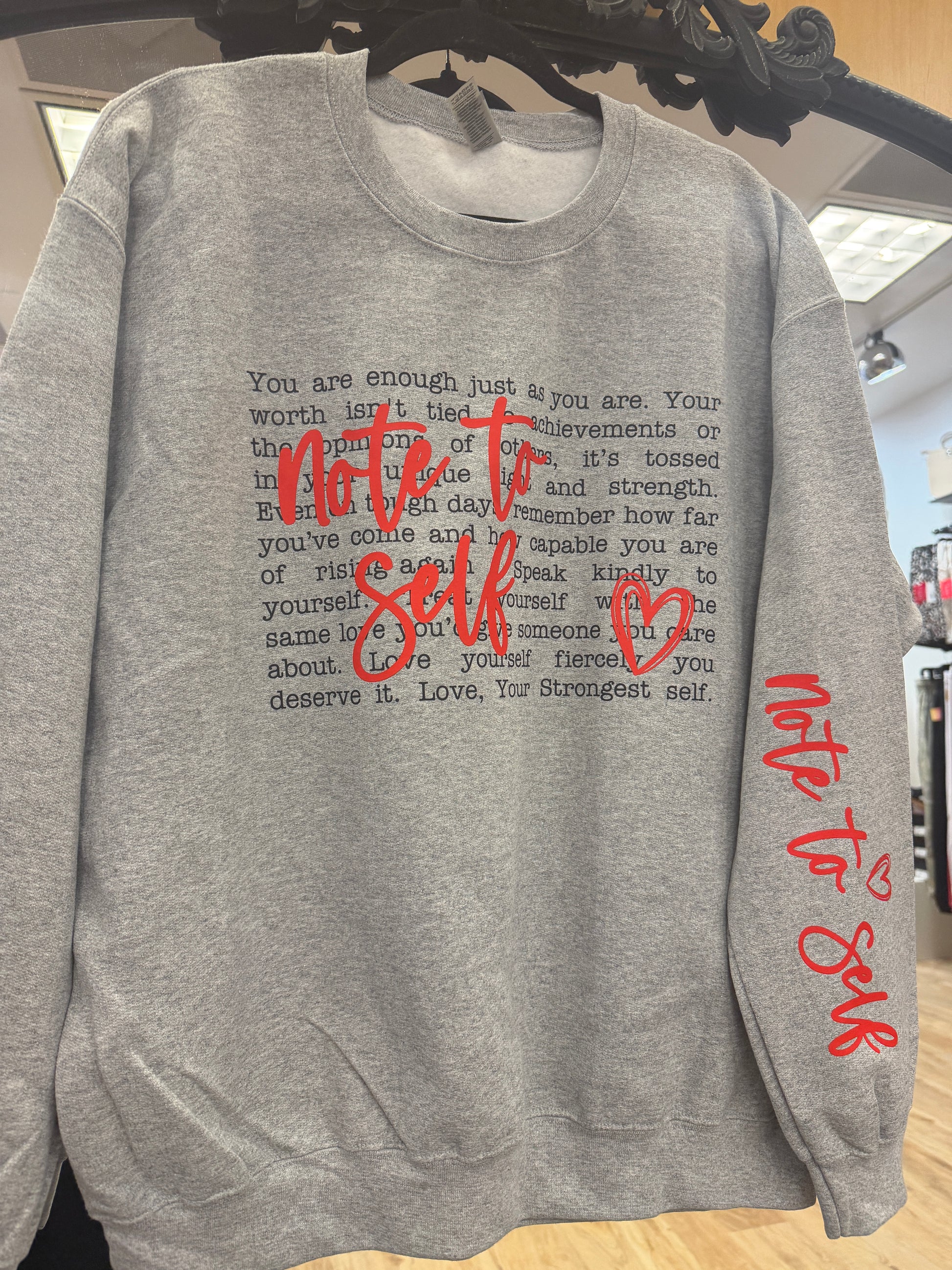 Wear a powerful message of self-love with our Note to Self graphic apparel. This isn't just clothing—it's a daily reminder that you deserve compassion, especially from yourself. Born from a personal mission to honor those lost to suicide, every piece carries purpose. A meaningful portion of each sale goes directly to the Shawnee County Suicide Prevention and Coalition, creating real impact in our community. Whether you're supporting mental health awareness or gifting someone who needs encouragement, this apparel transforms a simple purchase into an act of hope and solidarity.